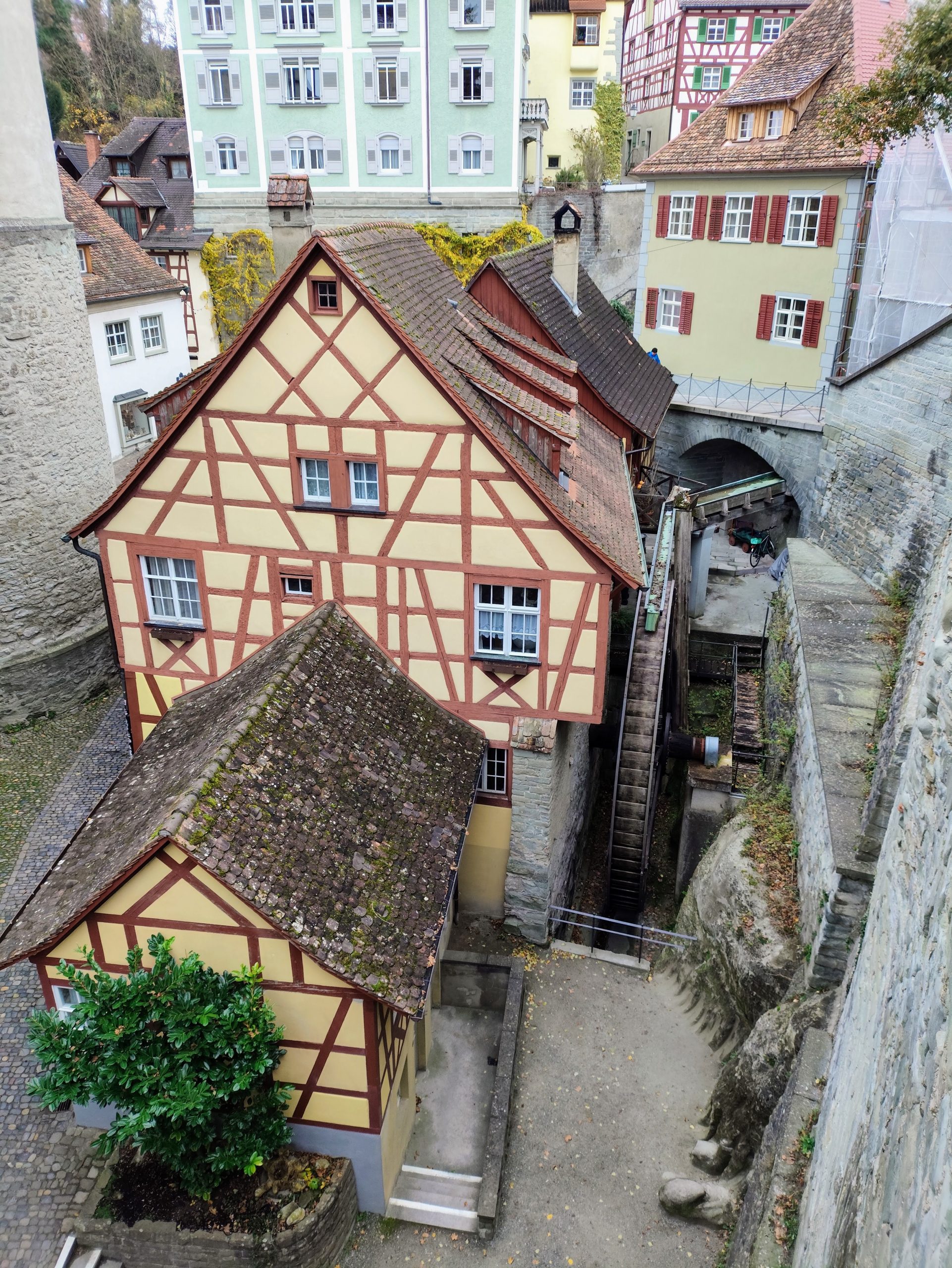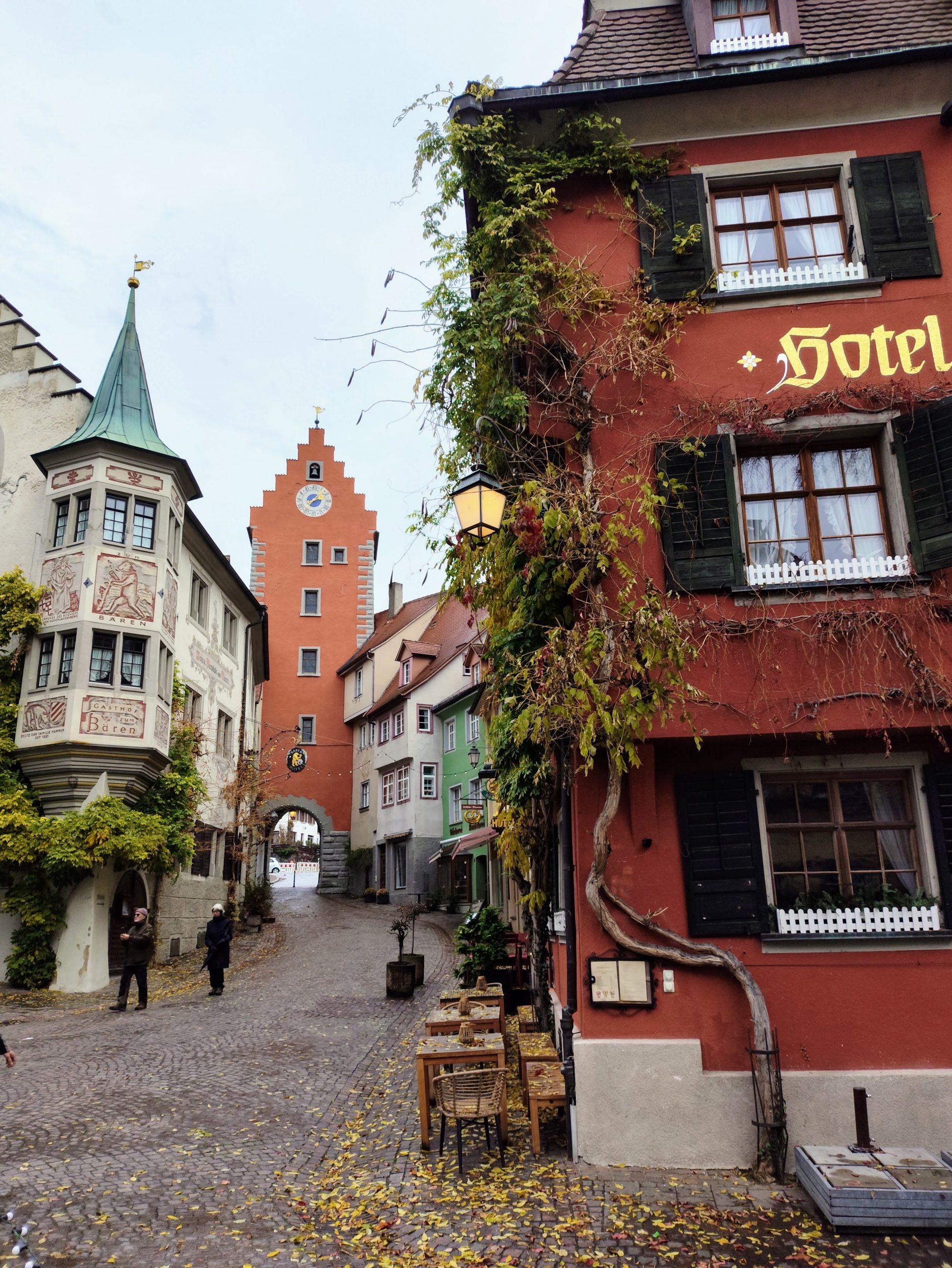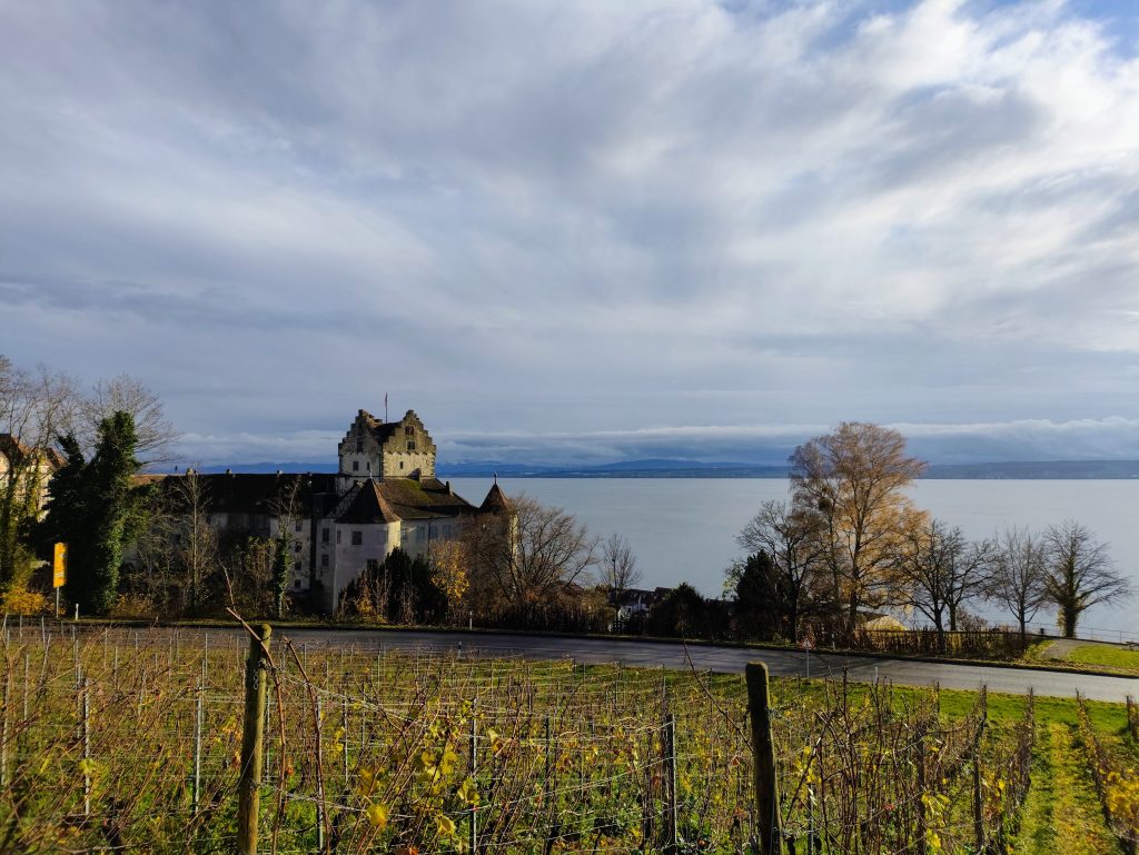 Wir fahren zurück nach Meersburg, wo wir in der Oberstadt die Altstadtgassen entlangschlendern. Fachwerkhäuser lehnen sich aneinander, Weinreben klettern über Mauern, und die Aussicht über den See ist an diesem Herbsttag besonders eindrucksvoll.