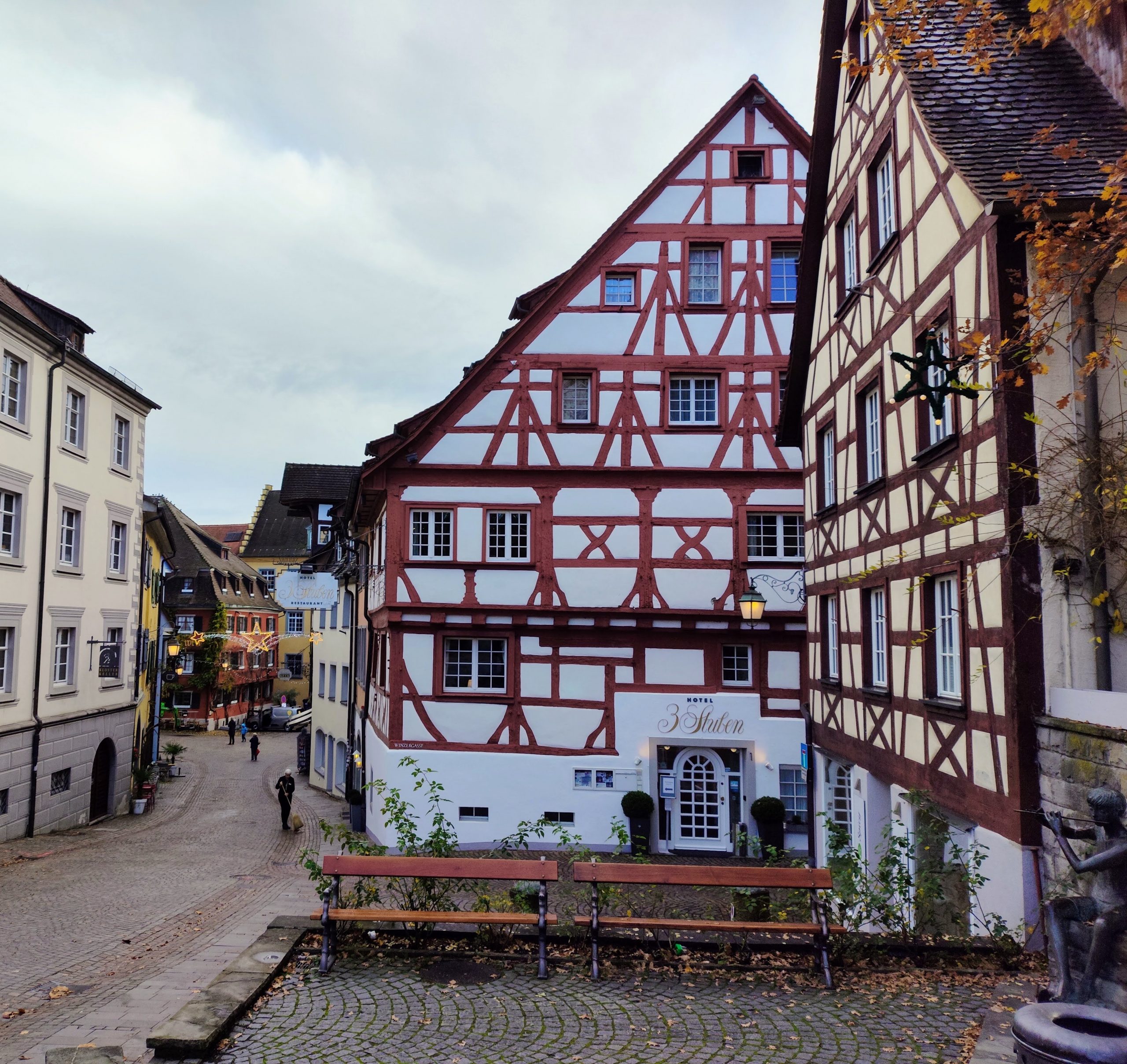 Nach einer ruhigen Nacht im Hotel Augustiner Tor und einem ausgiebigen Frühstück ziehen wir los. Konstanz zeigt sich im Herbst anmutig: leichte Feuchtigkeit in der Luft, Blätter auf dem Pflaster und ein Licht, das die Fassaden weich erscheinen lässt.